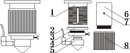 1.聚焦鏡內(nèi)筒 2.進氣管 3.限位螺圈 4.氣嘴過渡套5.氣嘴 6.鏡筒 7.限位螺絲 8.調(diào)節(jié)套筒.