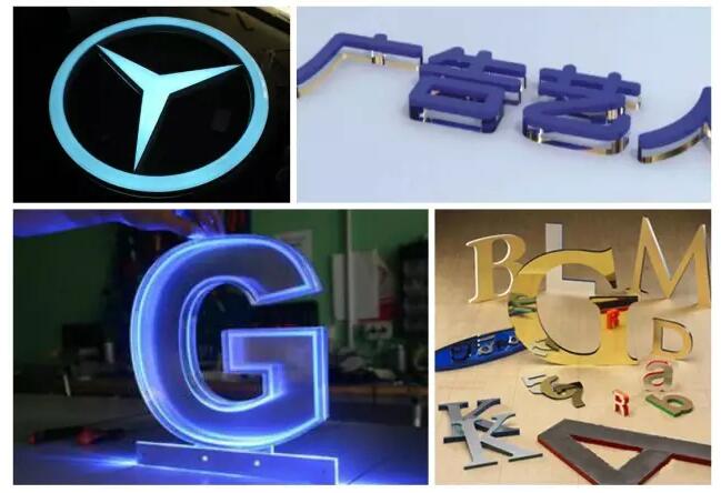 水晶字、立體商標(biāo)是廣告行業(yè)中不可缺少的表現(xiàn)形式。CO2激光切割機(jī)可在亞克力、雙色板等材質(zhì)上進(jìn)行精準(zhǔn)地切劃曲線圖案。由于激光切割機(jī)采用的是“非接觸”加工,不會(huì)壓壞材料,而且切口光滑,能直接省去二次加工。